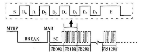 一個(gè)完整的DMX512信息包(Packet)由一個(gè)MTBP位、一個(gè)Break位、一個(gè)MAB位、一個(gè)SC和512個(gè)數(shù)據(jù)幀構(gòu)成。MTBP(Mark Time Between Packets)標(biāo)志著一個(gè)完整的信息包發(fā)送完畢,是下一個(gè)信息包即將開始的“空閑位”,高電平有效。Break為中斷位,對應(yīng)一個(gè)信息包結(jié)束后的程序復(fù)位階段,寬度不少于兩個(gè)幀(22比特)。程序復(fù)位結(jié)束后應(yīng)發(fā)送控制數(shù)據(jù),但由于每一個(gè)數(shù)據(jù)幀的位(即開始位)為低電平,所以必須用一個(gè)高電平脈沖間隔前后兩個(gè)低電平脈沖,這個(gè)起間隔、分離作用的高電平脈沖即MAB(Mark After Break),此脈沖一到,意味著“新一輪”的控制又開始了。SC(STart Code)意為開始代碼幀(圖1中的第0幀),和此后到來的數(shù)據(jù)幀一樣,也是由11位構(gòu)成,除兩個(gè)高電平的結(jié)束位之外,其他9位全部是低電平,通常將其叫做第0幀或第0通道(Ch~nel No 0),可理解為一個(gè)不存在的通道(NON一~istent Channe1)。