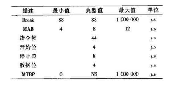 ? ? ??表1是DMX512信息包的定時(shí)表,表中NS意為Nm Spec~ed,寬度沒有嚴(yán)格限制,由程序設(shè)計(jì)者自行決定,比如MTBP的寬度可以介于0~1秒之間。