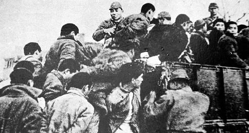圖為日軍將大批南京青壯年捆綁后,押往郊外集體屠殺。新華社發(資料照片)